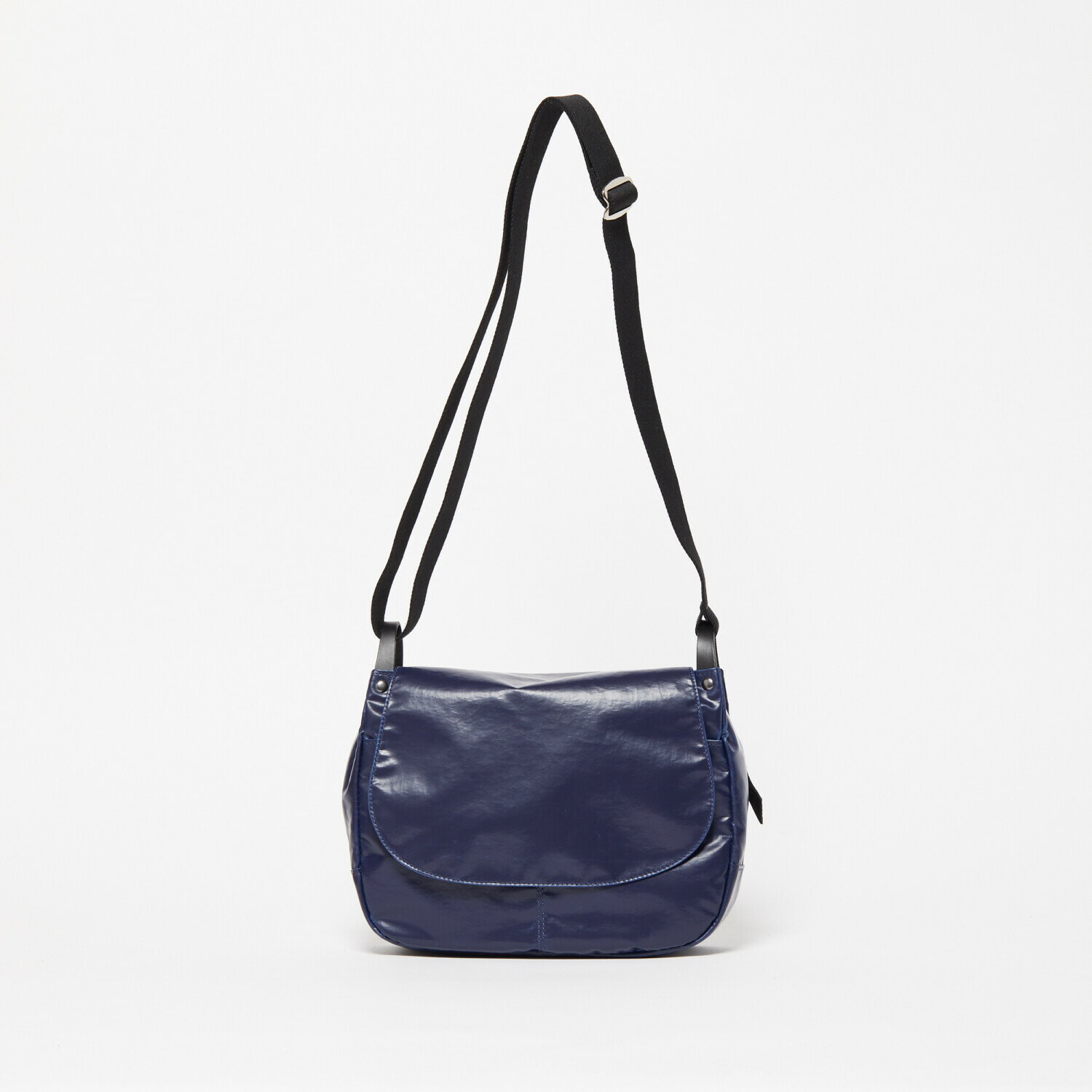 フラップ付きのポシェットデイリーから旅行まで サイドにレザーパーツが使われたこだわりのあるデザインです。