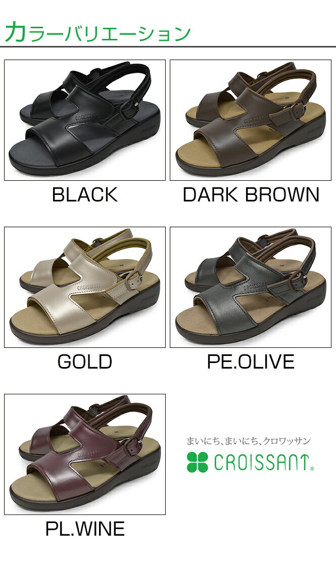 サンダル レディース 本革 日本製 黒 茶 金 オリーブ ワイン 柔らかい 痛くない 疲れない オフィス 事務所 バックストラップ 脱げない かかとあり 歩きやすい ブランド cr-4592 croissant クロワッサン コンフォートサンダル