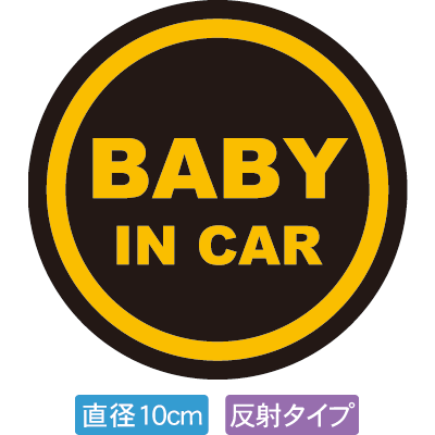 【送料無料】【光反射タイプ】自動車用BABYinCARステッカー「赤ちゃんが乗ってます 黒黄タイプ」外から貼るタイプ(直径10cm)
